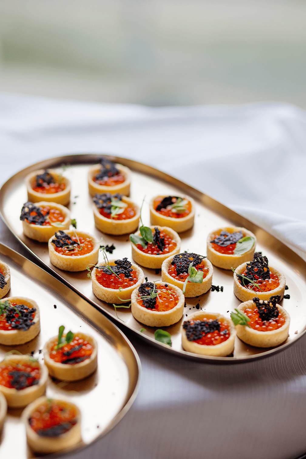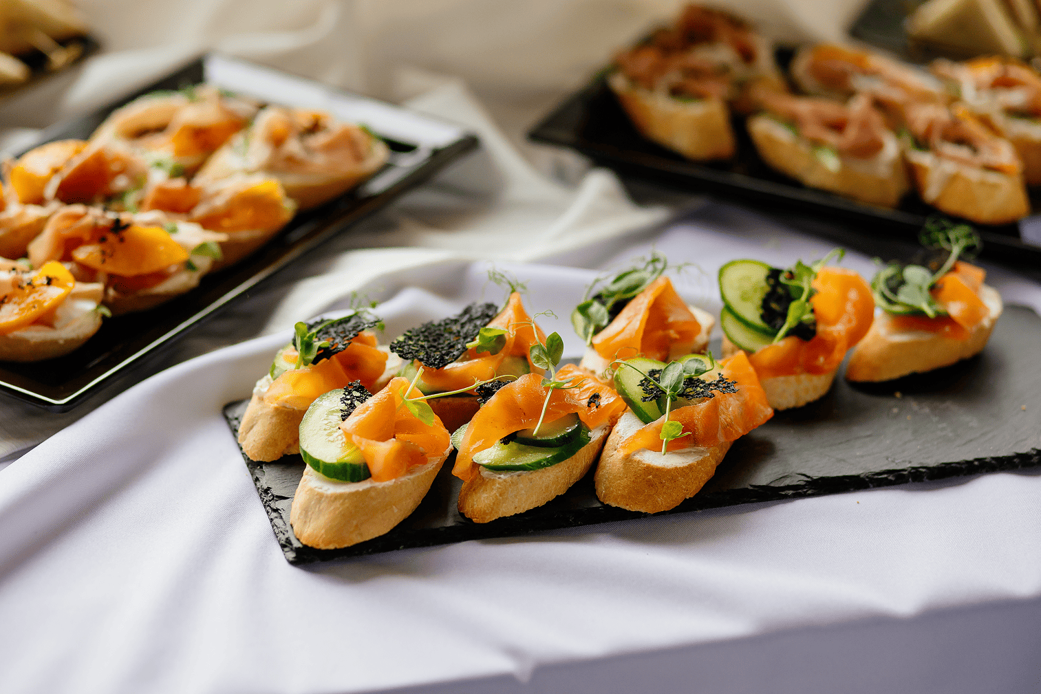● Zimne przekąski (Bruschetta Brioche, Tartaletki, Bliny z różnymi nadzieniami, Waflowe rożki z sosem, Naleśniki, Roladki, Tartar)